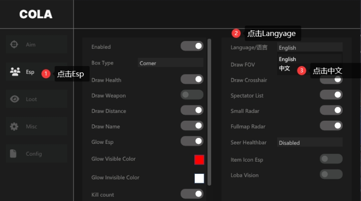 →点击中文