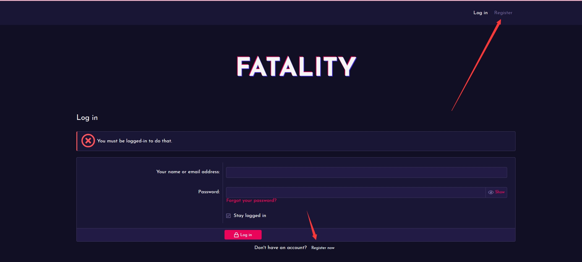 1. 打开Fatality官网,点击下方的【Register】按钮 或 点击右上方的【Register】按钮