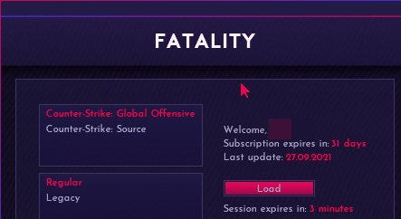 2:选择您要注入的游戏和版本 ( Fatality支持最新的csgo版本和2018的csgo版本以及CS起源 ),点击右下角的Load按钮 。 ( Regular是目前最新的游戏客户端 / Legacy是曾经LBY2018年时代客户端版本简称OLD )
