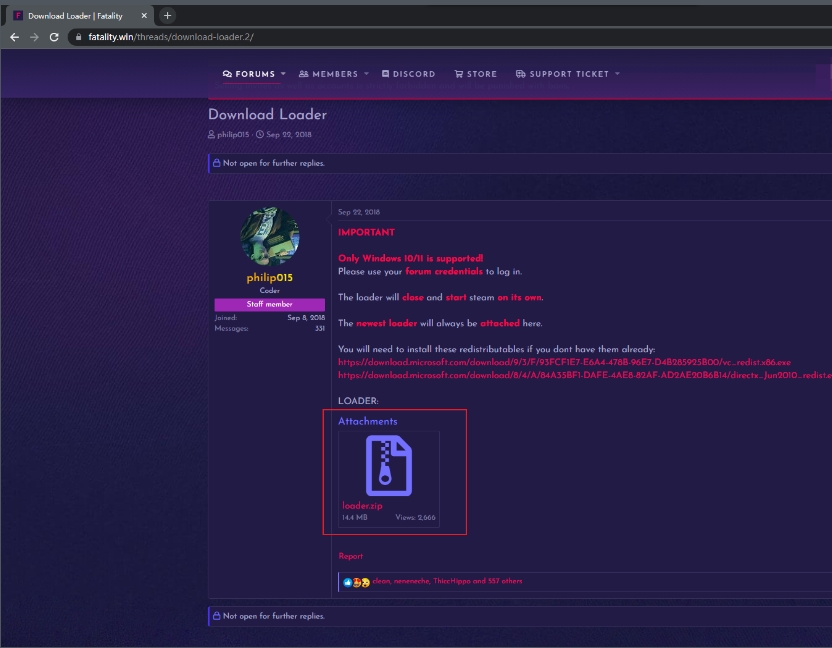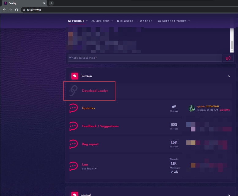 打开Fatality官网,往下滑,在【Premium】版块里找到【Download Loader】按钮、跳转到登录器专属帖。