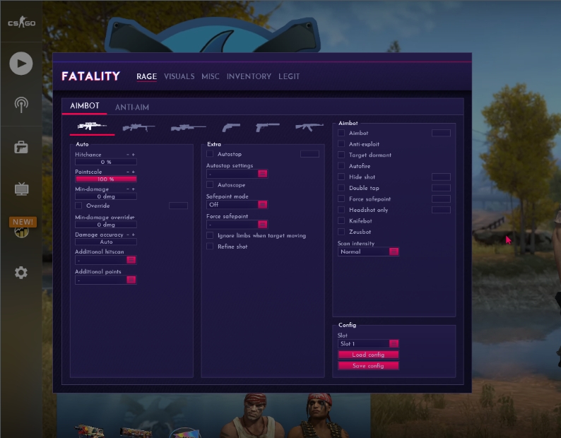 Fatality参数加载: 在外挂界面的右下角有个【Config】板块,选择你要加载的参数(Fatality的参数名称为Slot 1~6,固定名称无法修改) 并且点击【Load Config】按钮即可成功加载参数