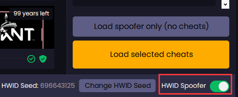 HWID Spoofer旁边的绿色按钮(绿色代表开启)如果需要更换机器码,则点击