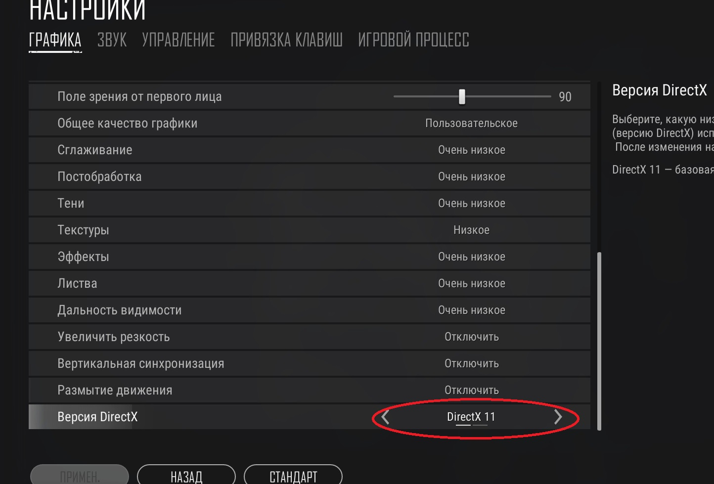 * 必须在游戏设置中选择Direct X 11:
