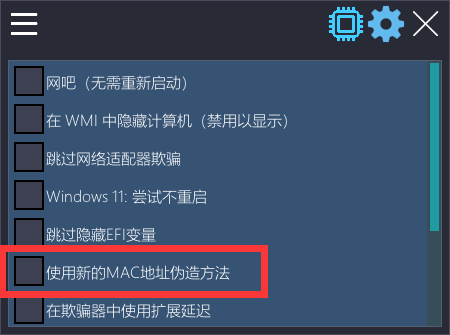 ## 5.跳过网络适配器欺骗–此选项允许您跳过MAC地址欺骗（在某些情况下，它可以解决互联网断开连接问题）。