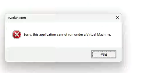 sorry, this application cannot run under a virtual Machine. 对不起,此应用程序无法在虚拟机下运行。